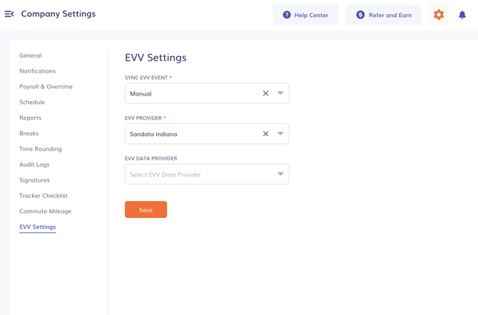 1. Contact a member of the Timeero team to enable EVV on your account. Once enabled you should see EVV Settings under the Company Settings page like below: