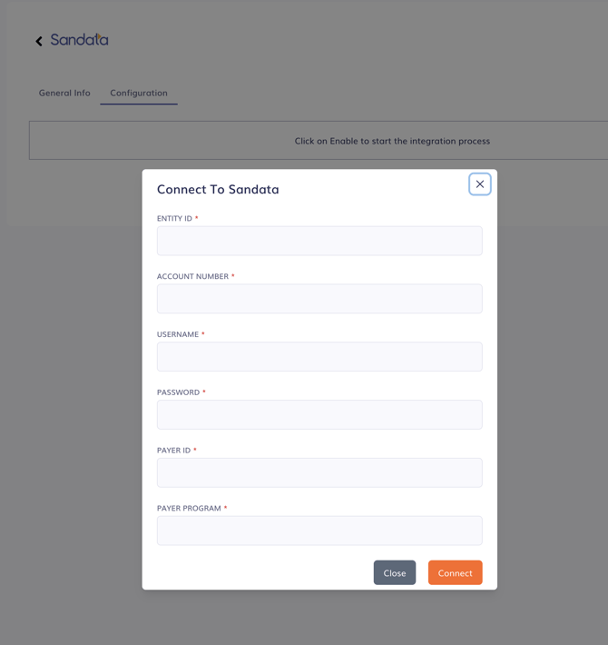 4. Enter your entity ID, account number, username, password, payer id and payer program and click on Connect.