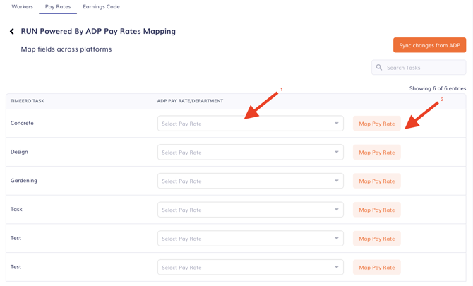 - In Timeero, go to Integrations > RUN Powered by ADP > Configuration > Configure Mappings > Pay Rates.